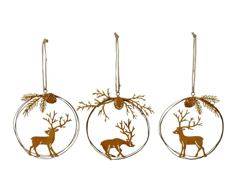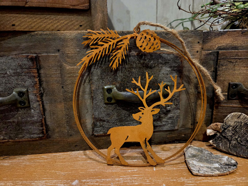 Winterliches Hängeschild "Hirsch" 13cmØ Edelrost Kranzschild
