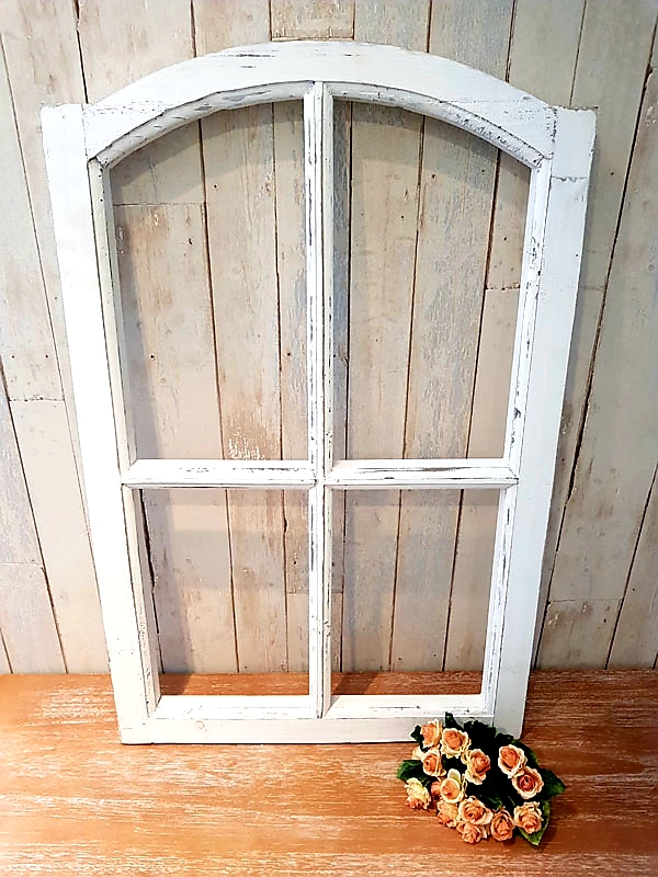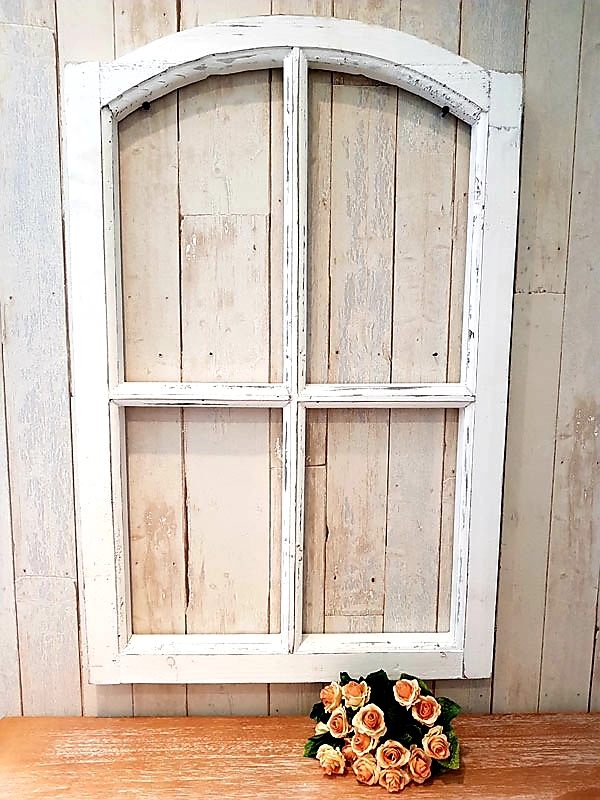 Deko Shabby Chic Holzfenster mit Rundbogen & Sprossen