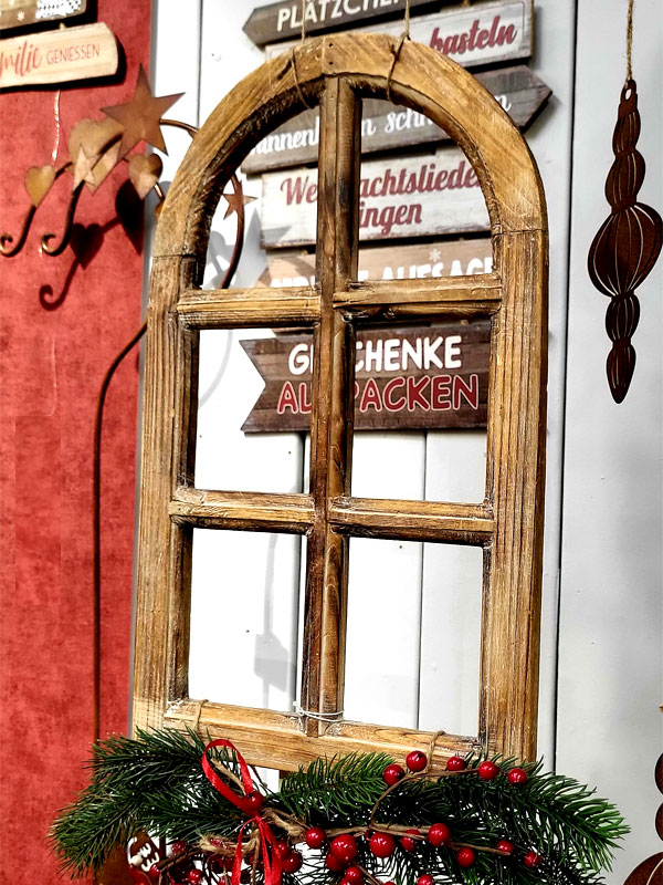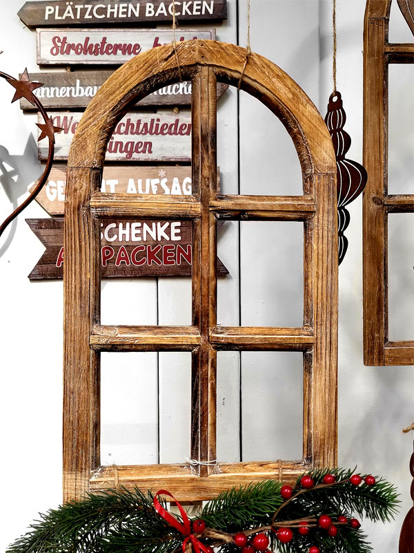 - Deko Holzfenster mit Rundbogen und Sprossen