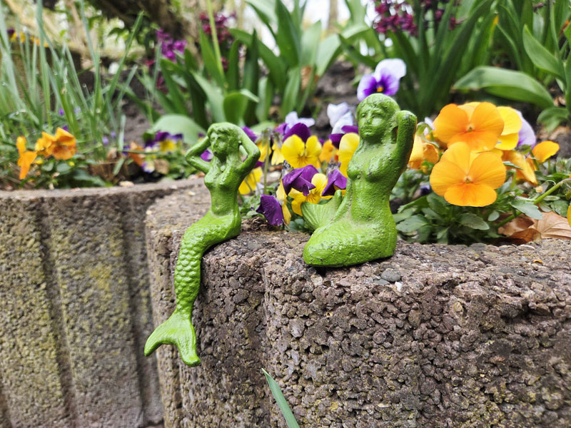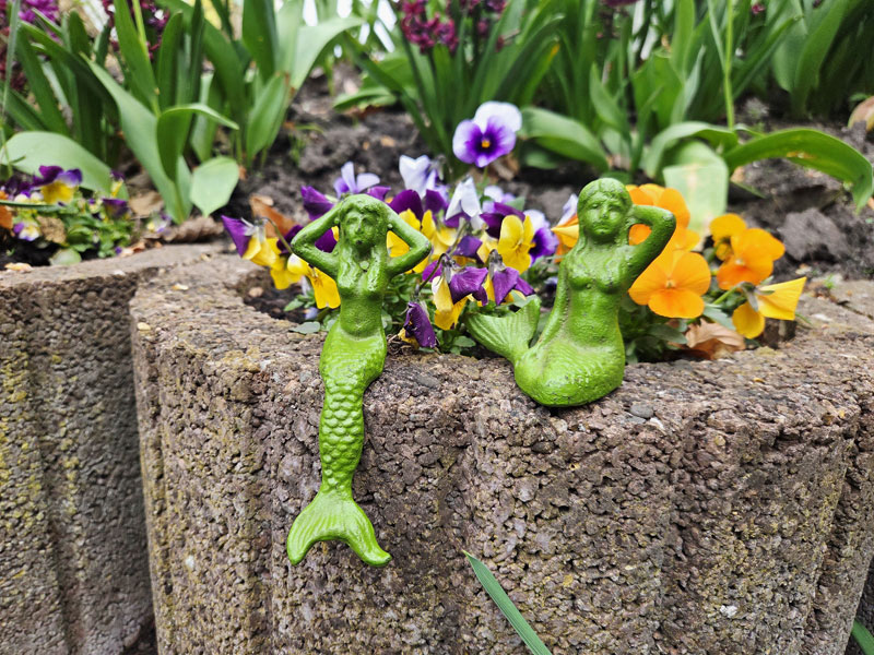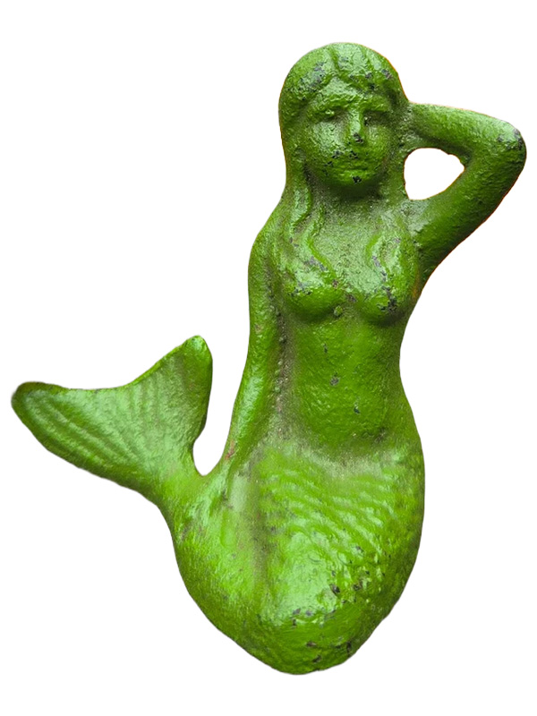 2er Set kleine gusseiserne Figuren "Meerjungfrauen" grün Kantenhocker