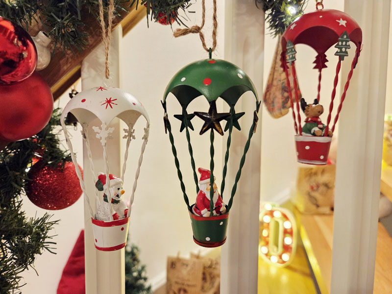 3er Set Weihnachtsdeko-Ballonfahrer zum Hängen aus Metall