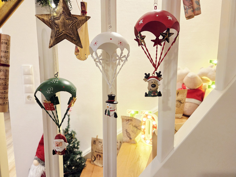 3er Set Weihnachtsdeko-Fallschirmspringer zum Hängen aus Metall