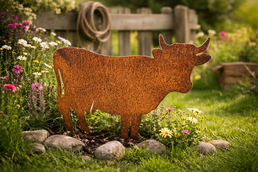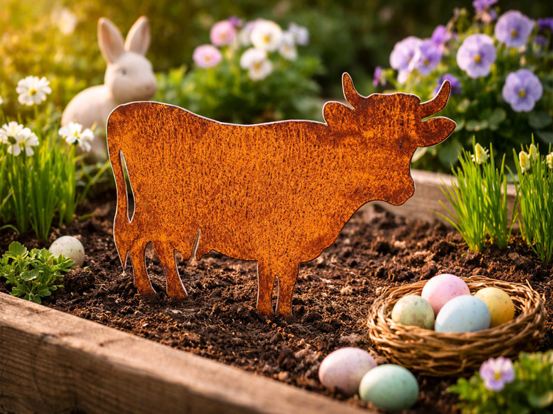 Beetfigur "Kuh" 46x36cm Edelrost zum Stecken