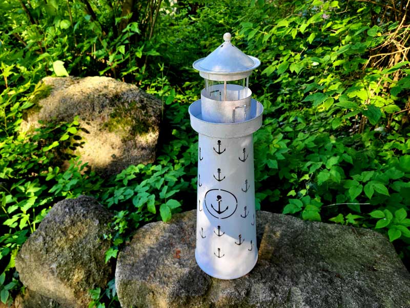 - Leuchtturm aus Metall altweiß mit angedeuteten Rostkonturen lackiert