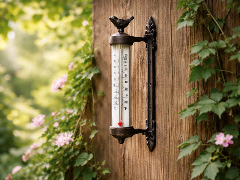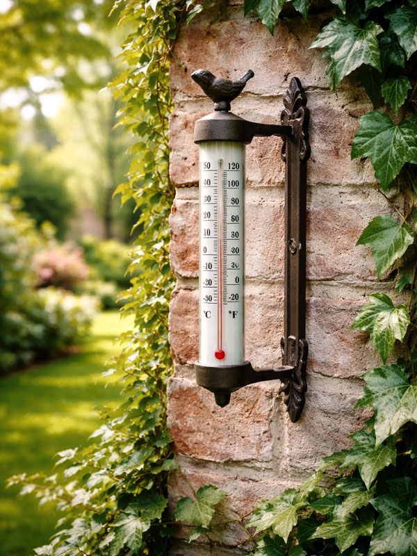 Die gut lesbare Skala zeigt die Temperatur sowohl in Celsius als auch in Fahrenheit an. Das wetterfeste Material macht das Thermometer langlebig und ideal für den ganzjährigen Einsatz im Außenbereich. Ob im Garten, auf der Terrasse oder am Balkon: Dieses Thermometer ist ein dekorativer Blickfang mit praktischem Nutzen.