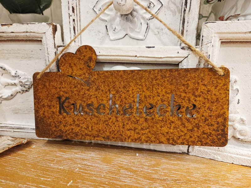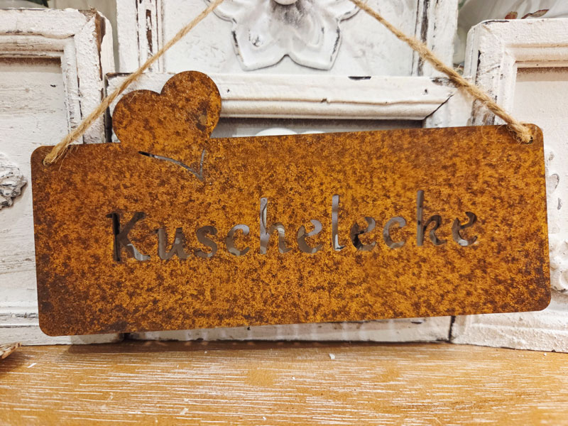 - Schild zum Hängen "Kuschelecke" aus Metall mit kräftiger Edelrostpatina