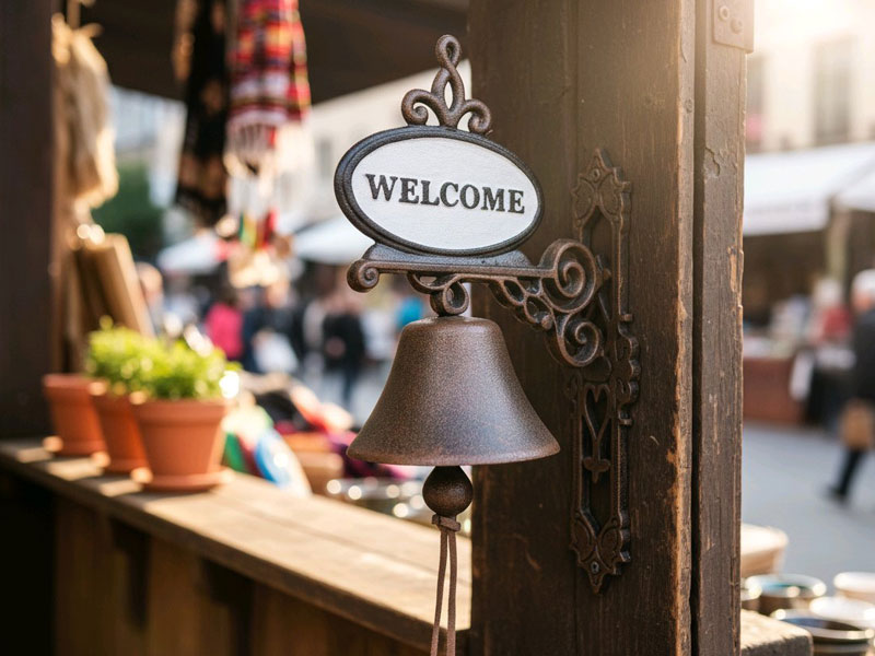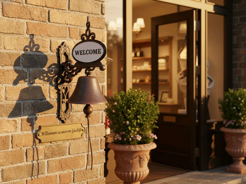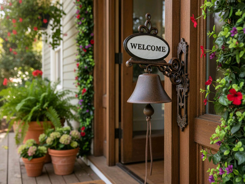 Gartenglocke mit freundlichem Schriftzug „Welcome“