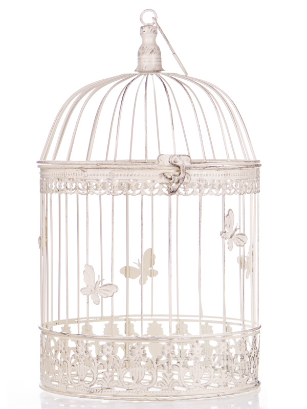 Großer Deko Vogelkäfig 41cm Rund "Shabby weiß"