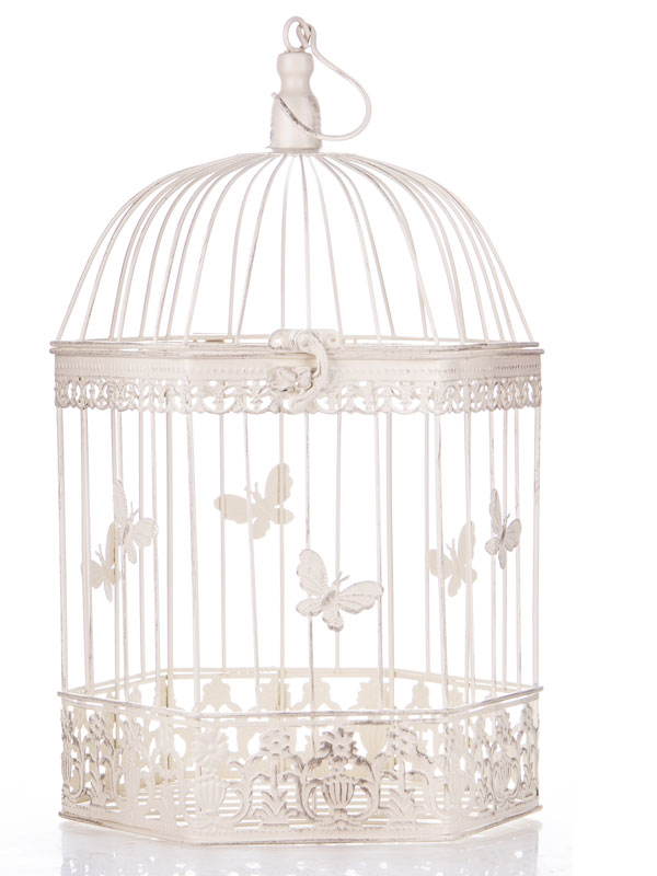 Großer Deko Vogelkäfig 41cm Sechseck "Shabby weiß"