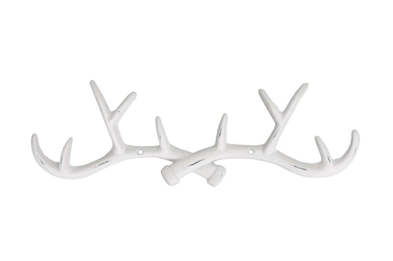 Großer Garderoben-Haken Hakenleiste "Geweih" weißes Gusseisen