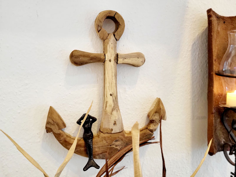 Kleiner, dekorativer Anker "Treibholz" aus recyceltem Teakholz gefertigt
