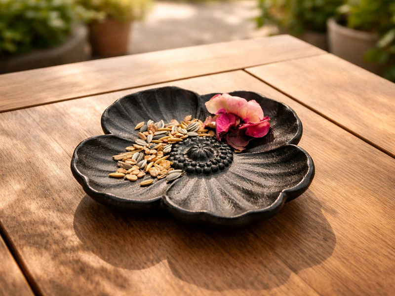 Dank der flachen Form eignet sich die Schale nicht nur für Vögel, sondern auch hervorragend als Insektentränke für Bienen und Schmetterlinge. So unterstützt du aktiv die heimische Tierwelt und schaffst gleichzeitig ein dekoratives Element in deinem Außenbereich.