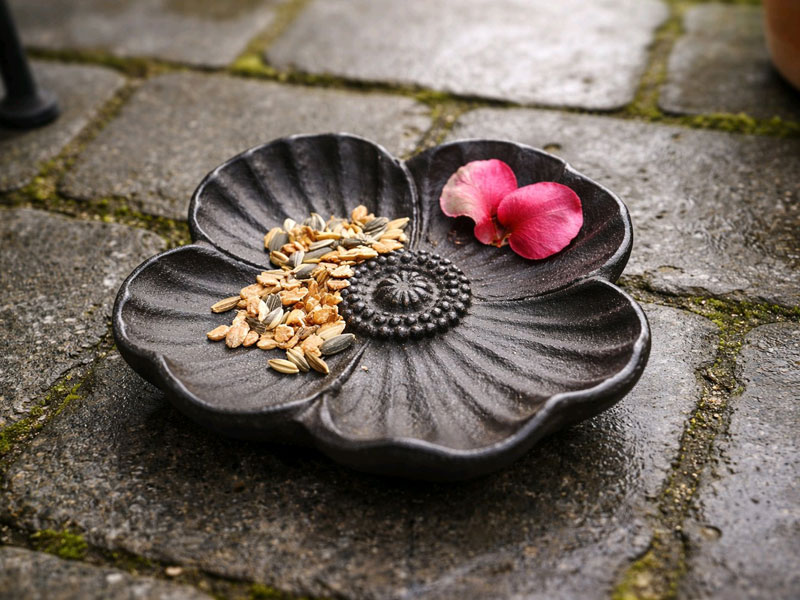 Kleine Vogeltränke Futterschale "Blattform" Modell B Gusseisen