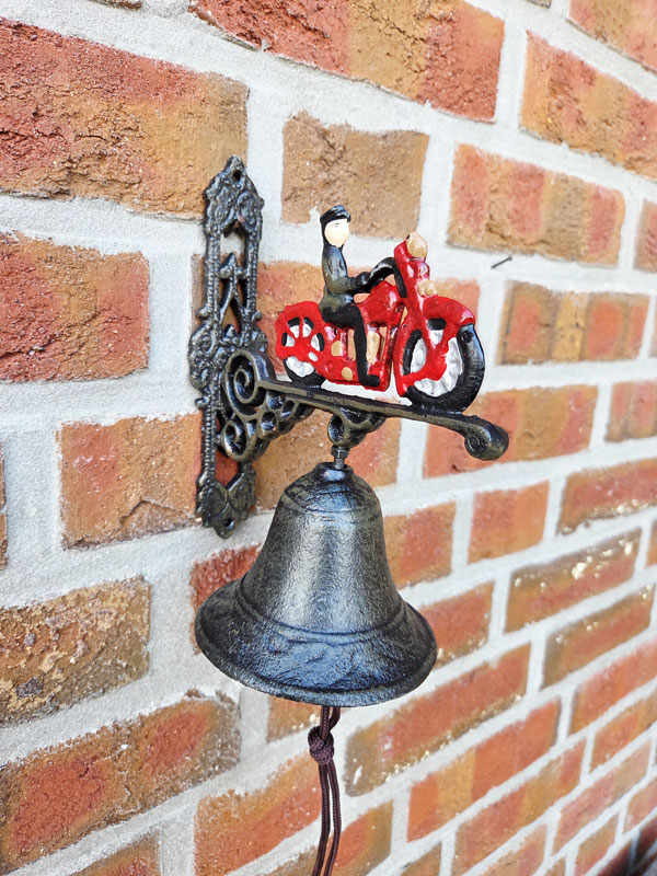 - Gartenglocke aus hochwertigem, massiven Gusseisen mit handlackiertem Motiv "Motorrad mit Biker"