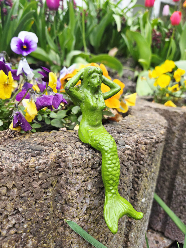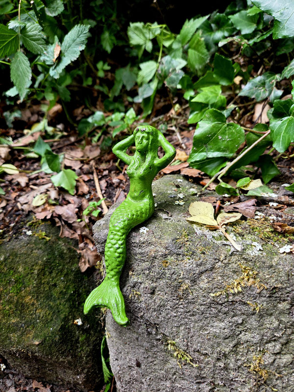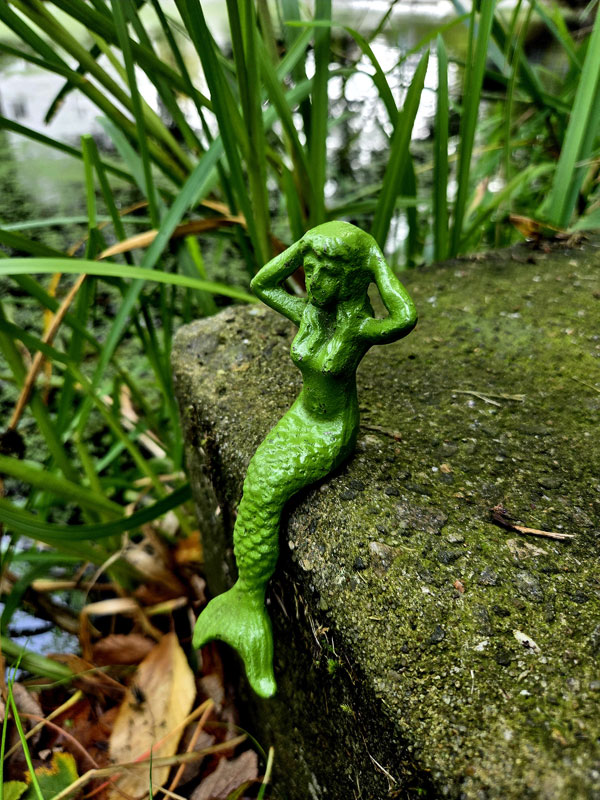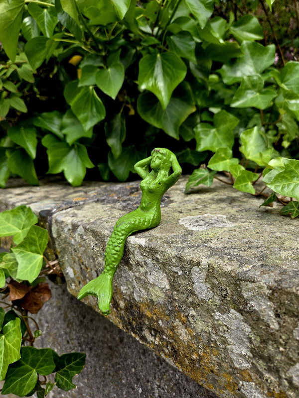 Kleine gusseiserne Figur "Meerjungfrau" Kantenhocker grün