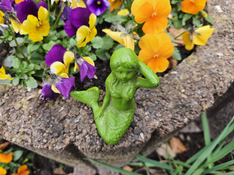 Kleine gusseiserne Figur "Sitzende Meerjungfrau" grün