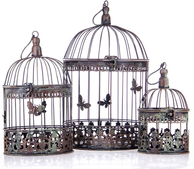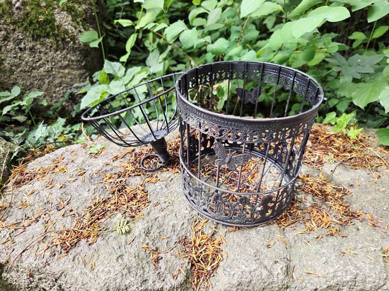 - Vogelkäfig aus Metall antik wirkend mit grünen Nuancen patiniert