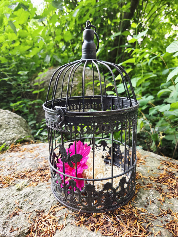 Aufgrund seiner Größe eignet sich dieser mittelgroße Käfig auch ideal hängend als Balkon- oder Veranda-Deko.