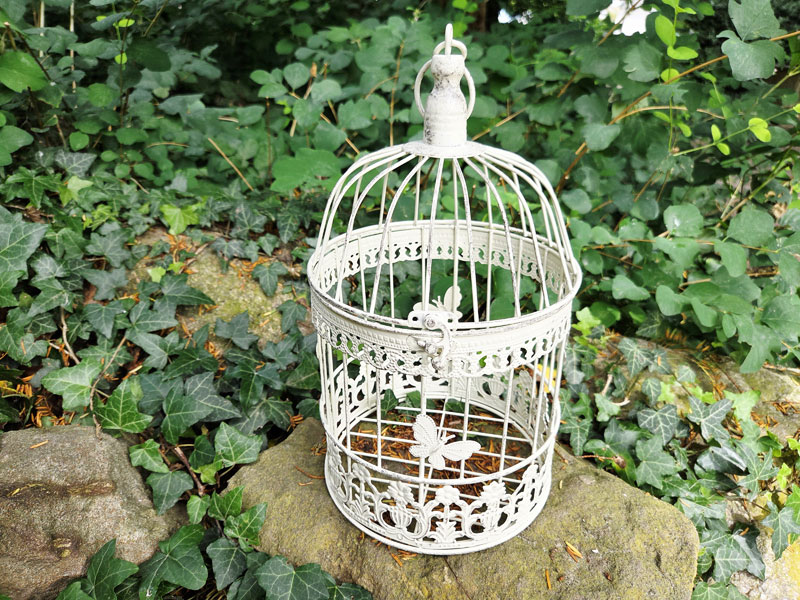 Mittelgroßer Deko Vogelkäfig 32cm Rund "Shabby weiß"