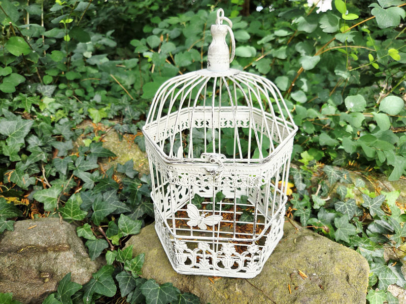 Mittelgroßer Deko Vogelkäfig 32cm Sechseck "Shabby weiß"