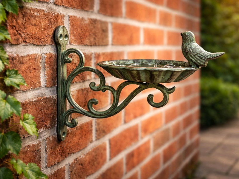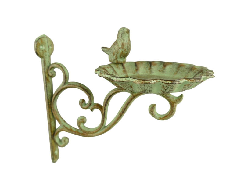 Aufwendig verzierte Wandhalterung mit Vogeltränke aus Gusseisen mit Antiklackierung