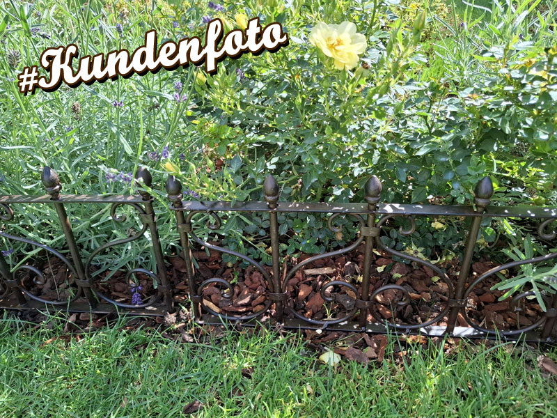Wunderschön verzierte Beeteinfassung aus antik gehaltenem Schmiedeeisen