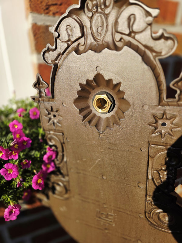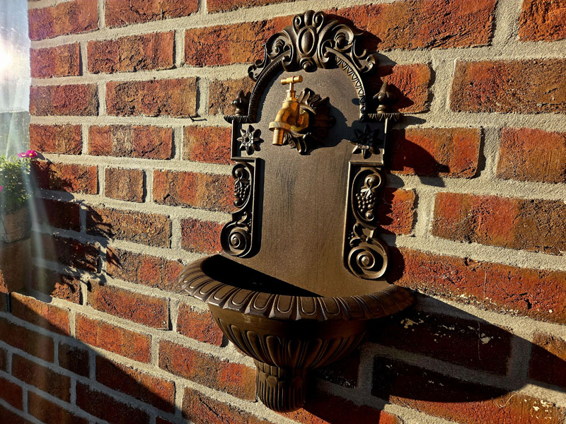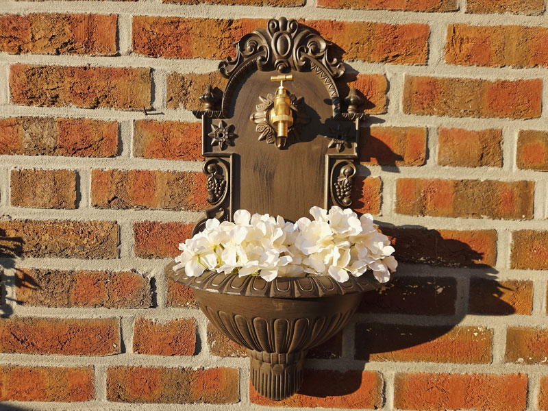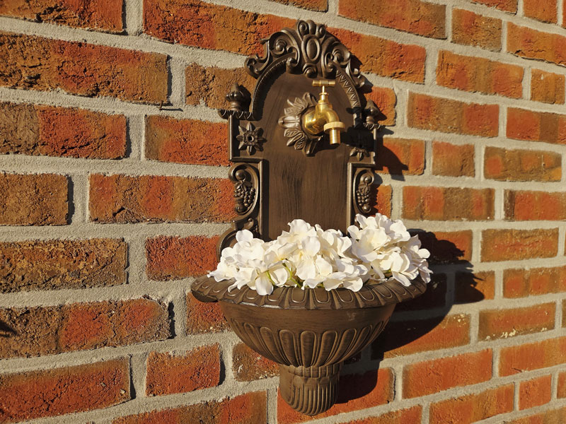 Unser wunderschönes Wandbecken wurde ganz im altem Landhausstil designt und wird in Deinem Garten für eine ganz außergewöhnlich idyllische Atmosphäre sorgen.