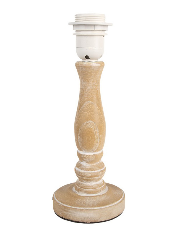 - Tischlampe mit Lampenfuß aus Holz, hellbraun mit weißen Nuancen im Shabby Chic lackiert