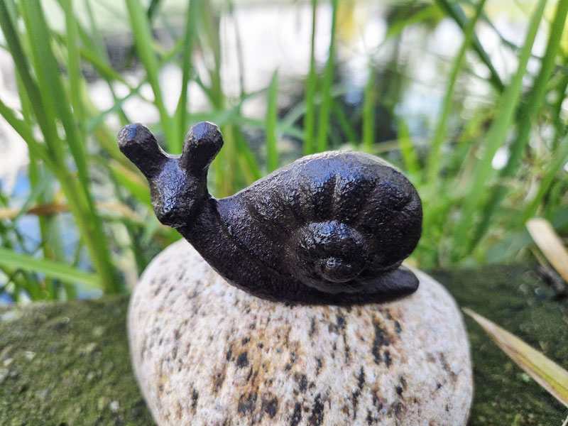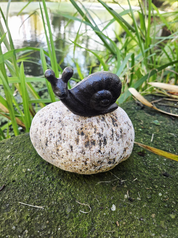 - Schnecke aus hochwertigem Gusseisen montiert auf einem schönen Naturstein