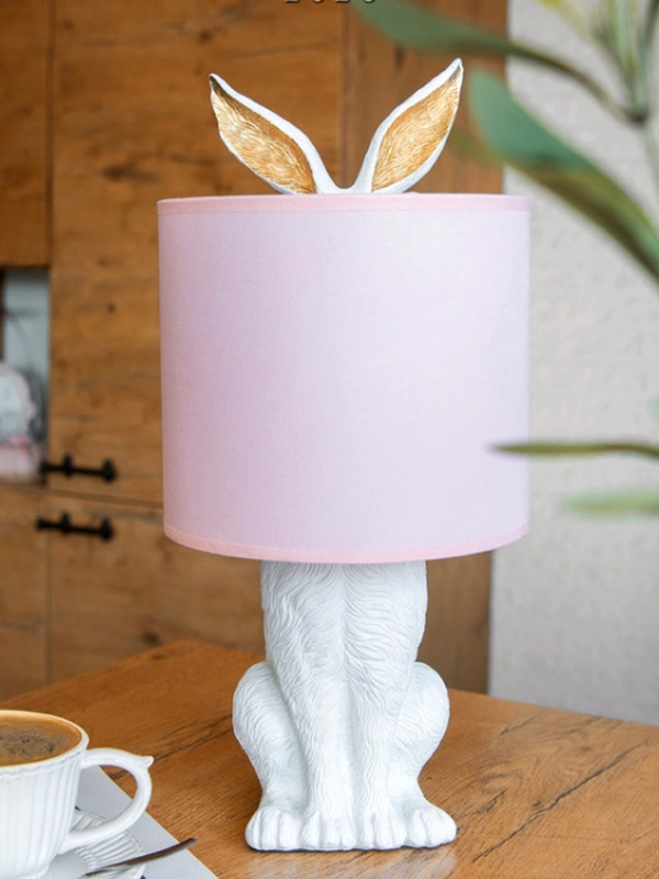 Tischleuchte "Osterhase" mit rosafarbenem Lampenschirm