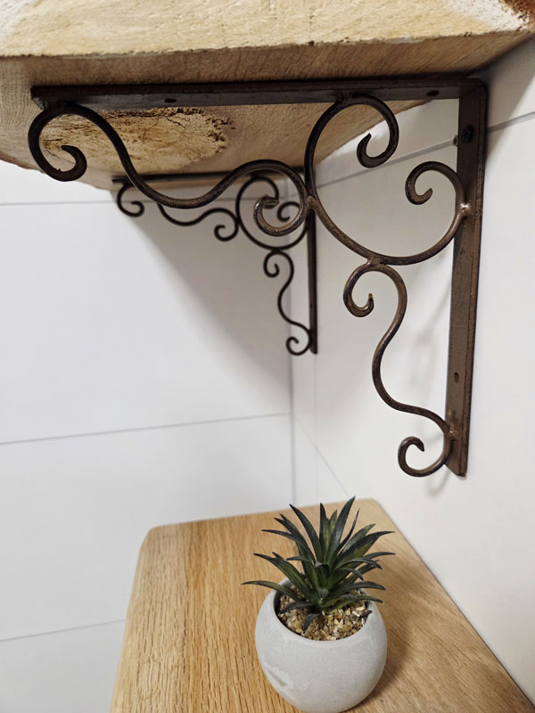 Antik gearbeiteter Regalbodenträger aus nostalgischem Schmiedeeisen