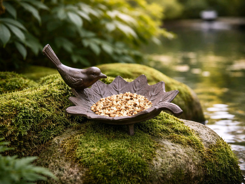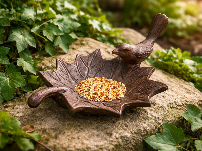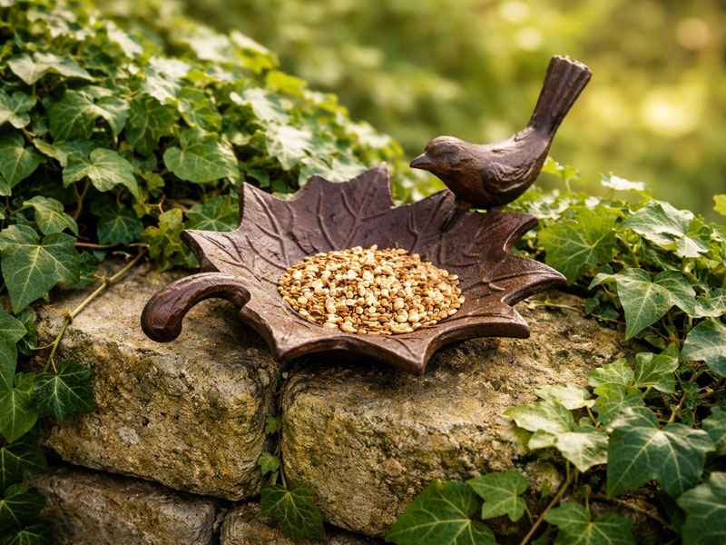 Vogeltränke Futterschale "Blatt" Gusseisen