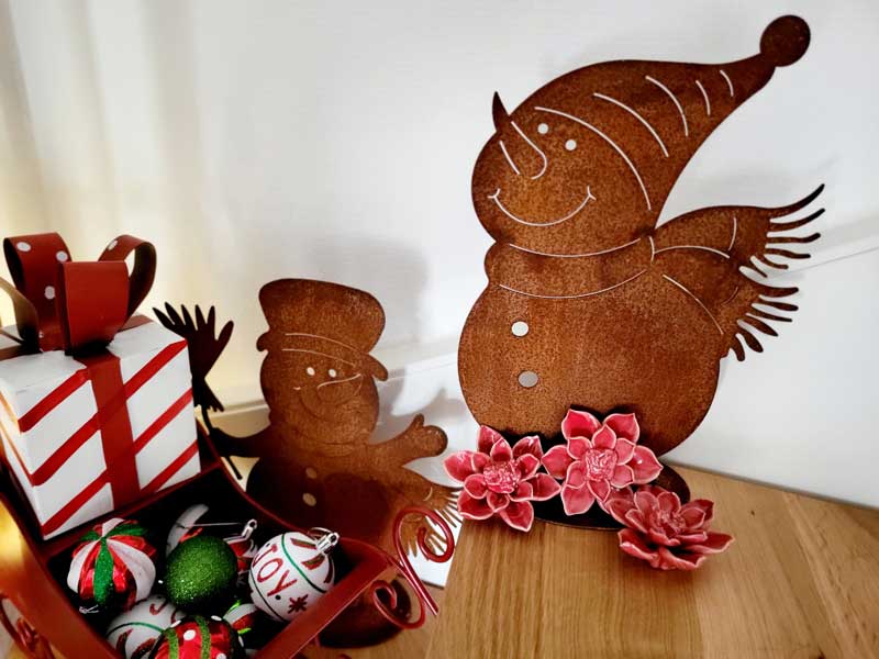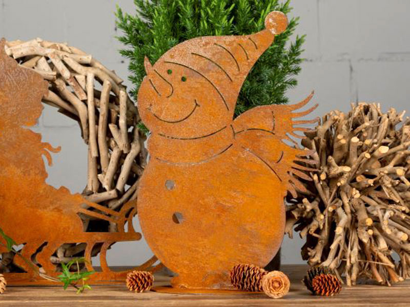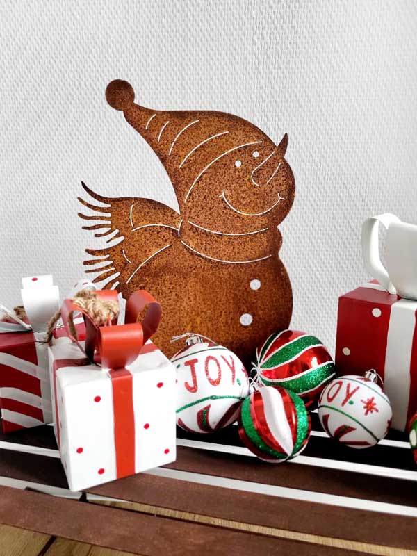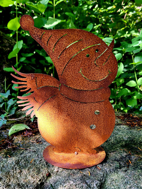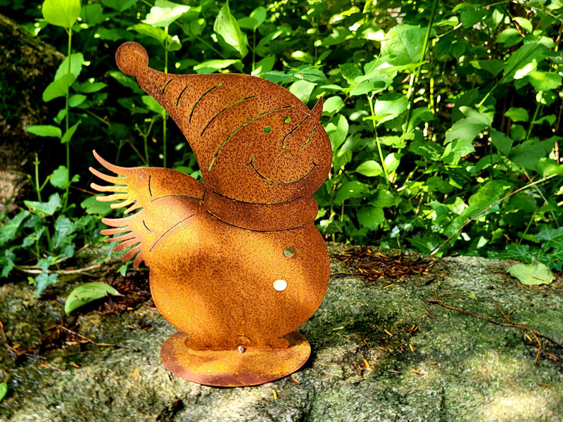 Winterlicher Deko Schneemann aus Metall mit Edelrostpatina