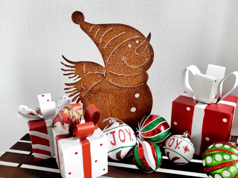 Weihnachtlicher Deko Schneemann Edelrost 20x30cm