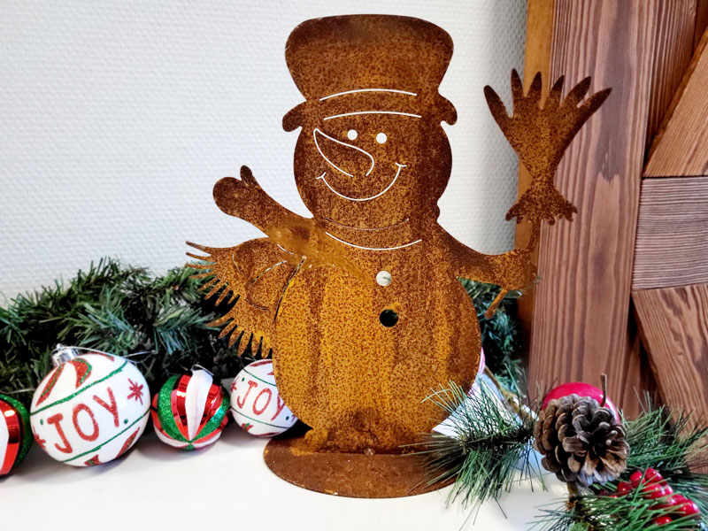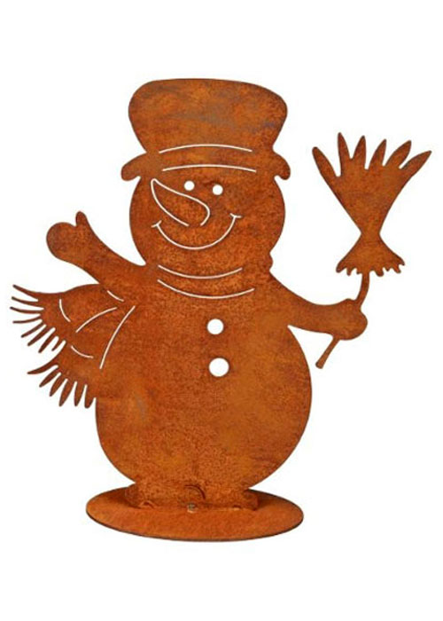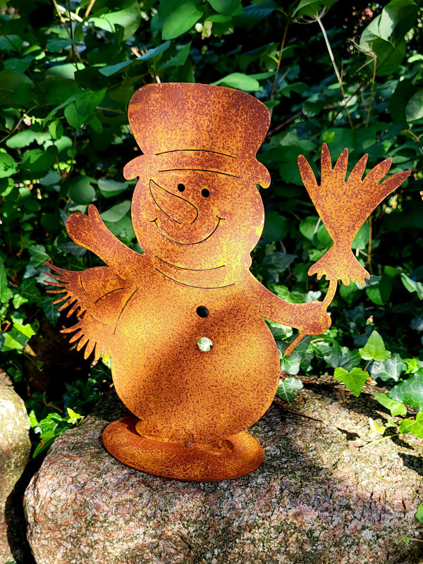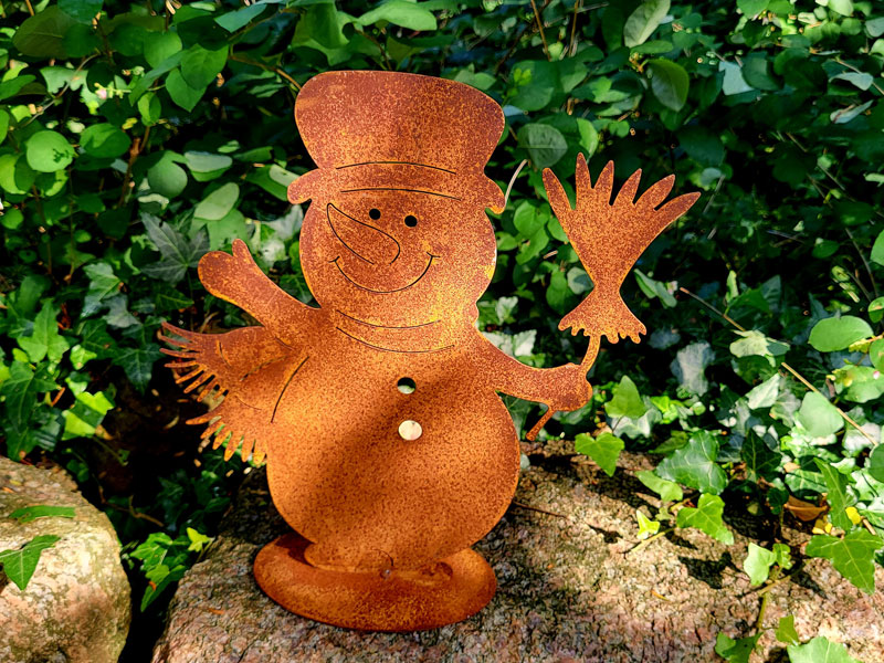 Winterlicher Deko Schneemann aus Metall mit Edelrostpatina