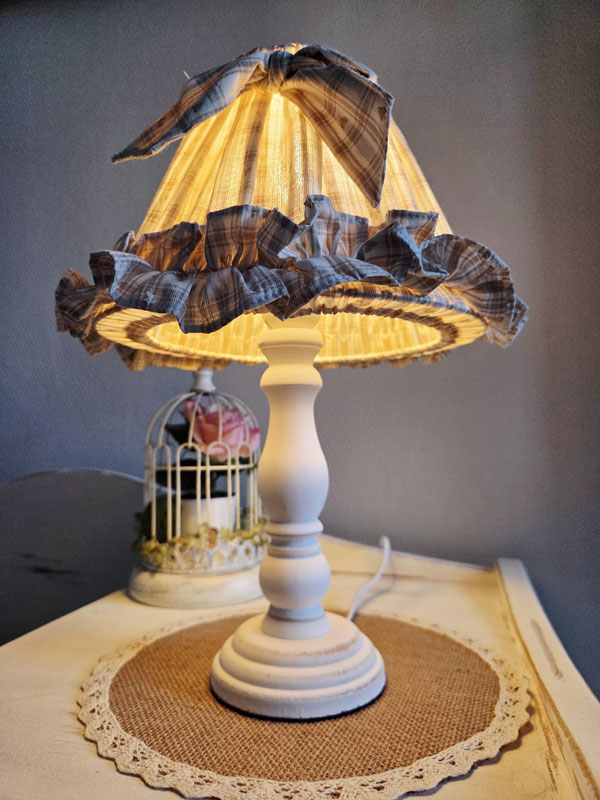 Lampenschirm mit Rüschen & Schleife im typischen Landhausstil