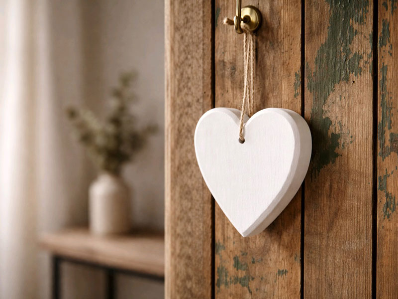 Das Herz ist aus hochwertigem, ca. 3,5 cm starkem Holz gefertigt und überzeugt durch seine stabile Verarbeitung sowie seine angenehme Haptik. Ob an Türen, Wänden, Fenstern oder als dekoratives Detail auf Möbeln – dieses Schmuckstück setzt überall einen charmanten Akzent.