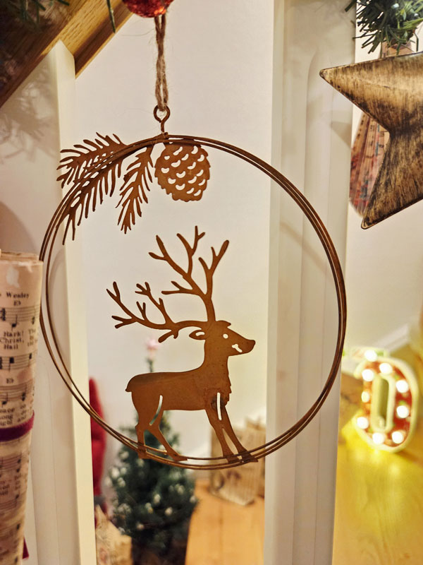 Winterliches Hängeschild "Hirsch" 13cmØ Edelrost Kranzschild